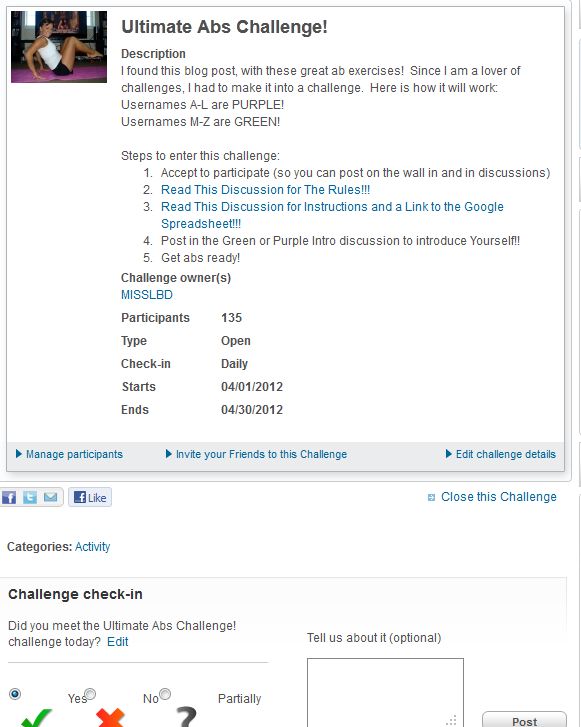 The challenge I want to discuss is the new one I created. It is an Ultimate Abs Challenge.