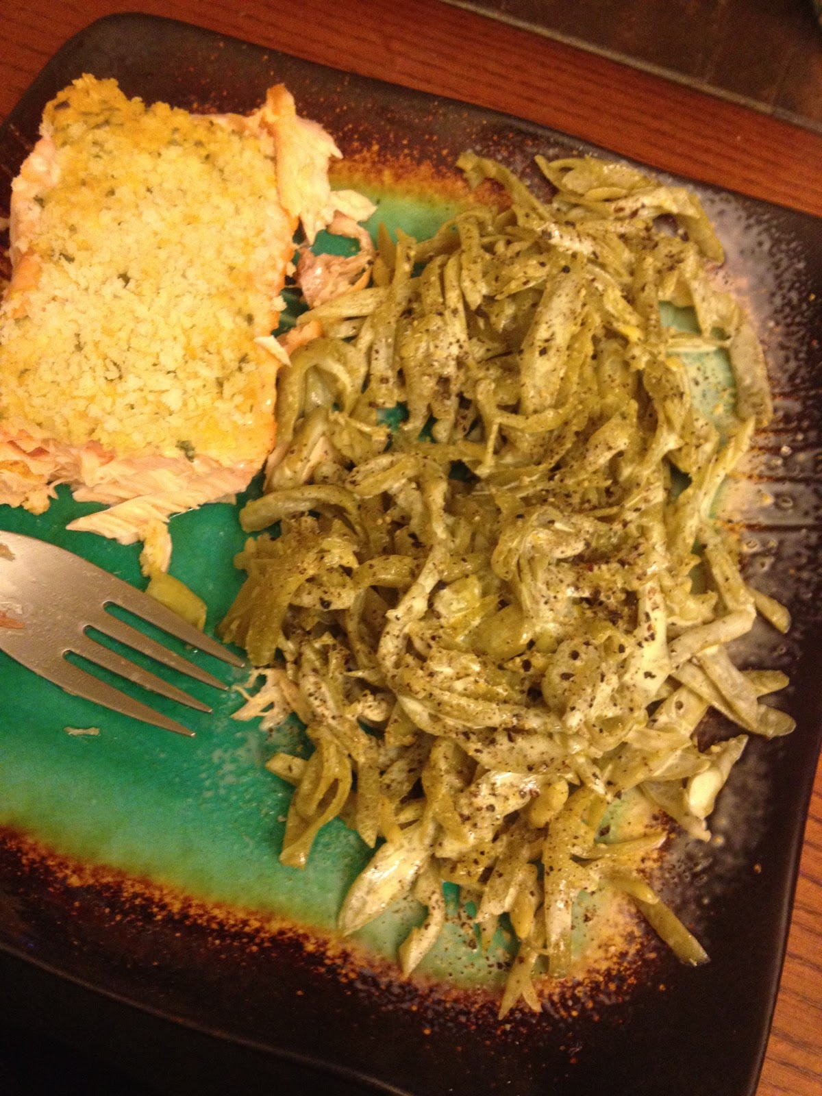 So I got that done, packed my breakfast and lunch for tomorrow, and made dinner. Yummy horseradish salmon with french cut green beans. My Tuesday ritual, having salmon and veggies, while I watch Biggest Loser.