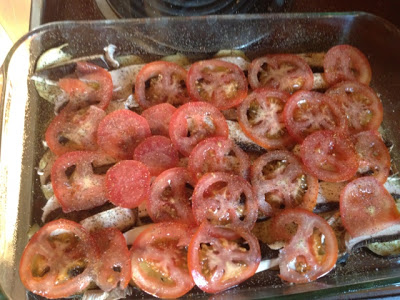 Layer with thinly sliced tomatoes (mandolin), and season.