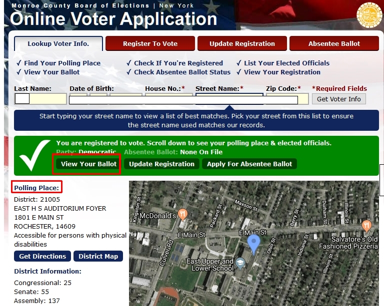 First, I looked up my registration. It took 4 minutes and 14 seconds. I went to the Monroe County Board of Elections website. I did that, because it’s my local county’s Board of Elections. They have my ballot, and they will tally my vote. That way, I’m getting my information right from the source.