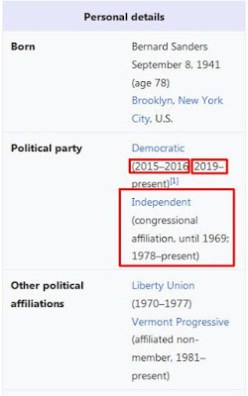 Beyond his record, his campaign is not as genuine as his rabid supporters would like us to believe. He found a loophole to disavowing PACs, by forming a non-profit one (https://apnews.com/345bbd1af529cfb1e41305fa3ab1e604). As a life long registered member of the Democratic party, I am insulted at Sanders refusing to join our party unless he gets to be in charge. According to Wikipedia he has been a registered Independent from 1978 – present. He switched to the Democratic party in 2015, but switched back to Independent when he didn’t win the nomination. Now he’s back, only because he wants the nomination (https://en.m.wikipedia.org/wiki/Bernie_Sanders).