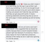 As I said in one of my comments, it is not enough to just not be racist. We must be actively anti-racist, which means calling it out even when it seems “casual”. Not all white people believe one thing or act one way. The same is true for every other race on earth. Please take some time to learn about racism more. I recommend the documentary “I am Not Your Negro”. It appears to be on Amazon Prime, and if you have a library card, you can get it on Hoopla.